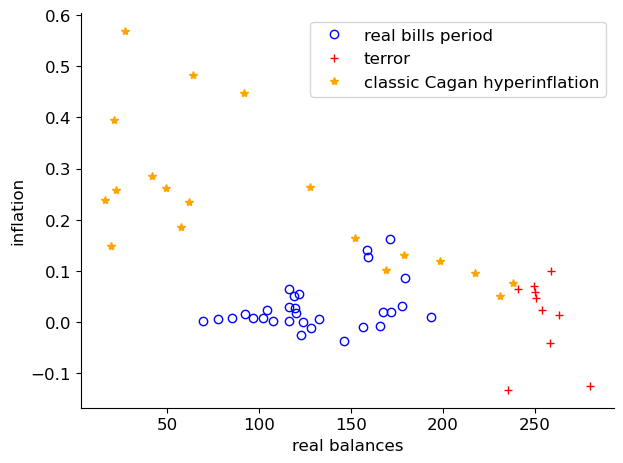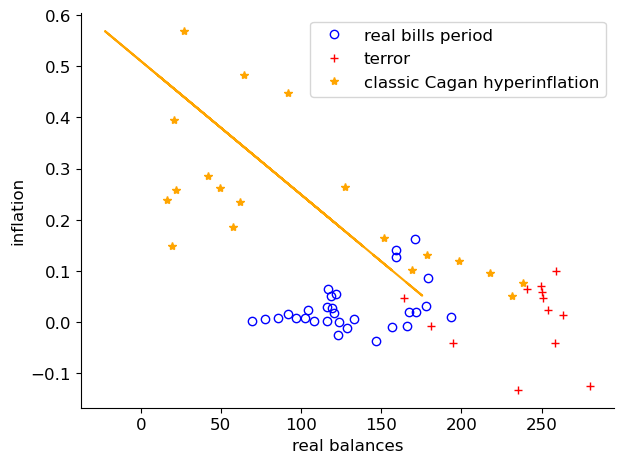 The three clouds of points in Figure Fig. 5.10 depict different real balance-inflation relationships.