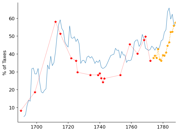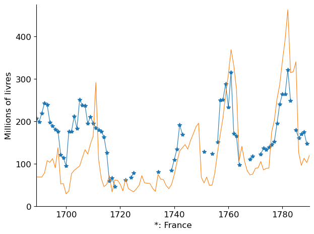 Figures Fig. 5.2 and Fig. 5.4 summarize British and French government fiscal policies during the century before the start of the French Revolution in 1789.