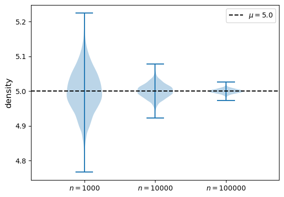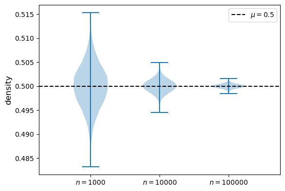 Let’s connect this to the discussion above, where we said the sample average converges to the “population mean”.