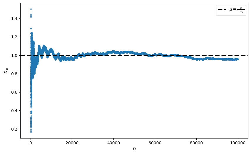 label=r"$\mu = \frac{\alpha}{1-\beta}$",