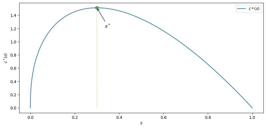 ax.plot((s_star_max, ), (c_star_max,), 'go', ms=8, alpha=0.6)